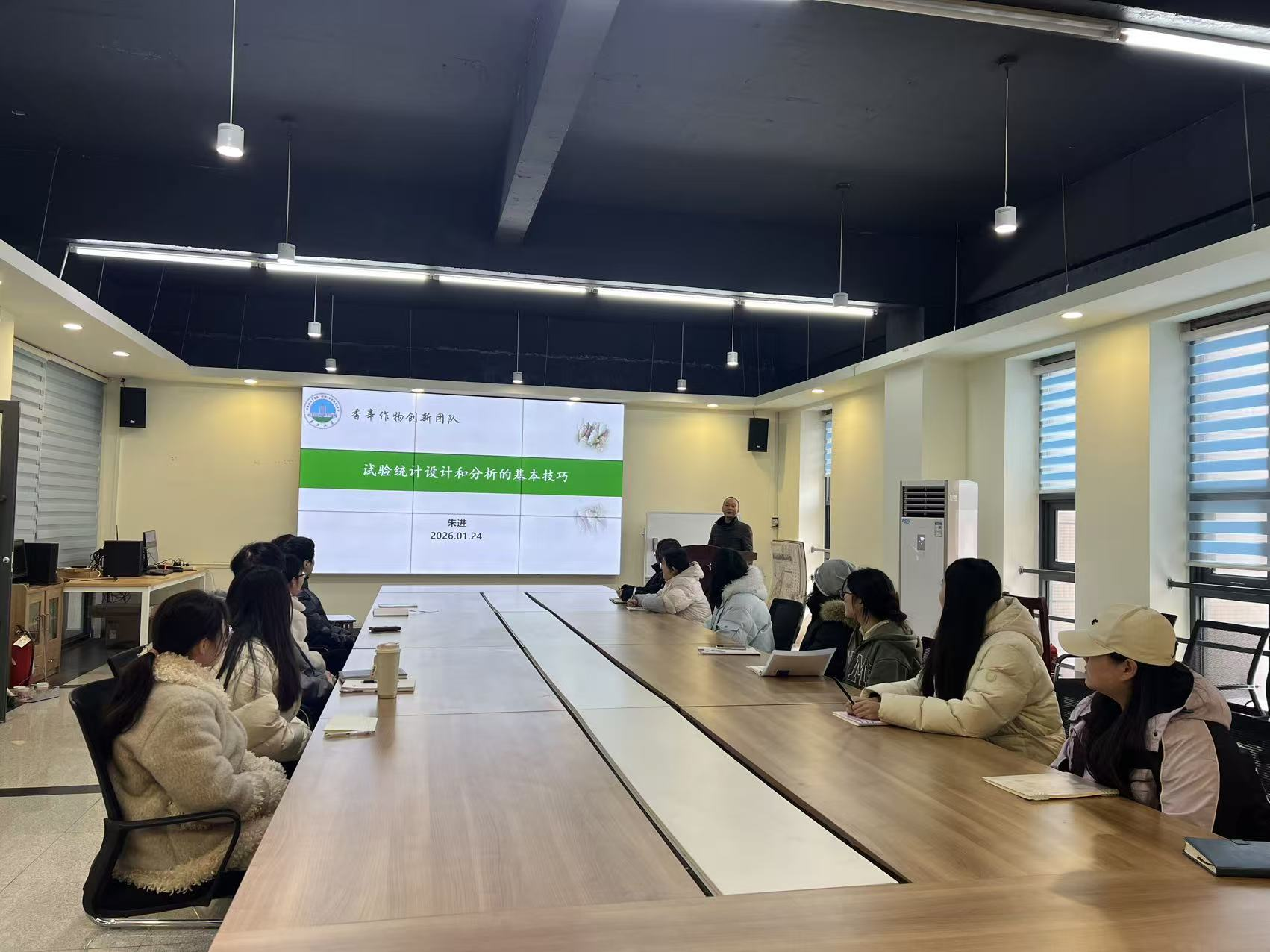 报告会上,朱进教授首先作了题为“试验统计设计与分析的基本技巧”的专题报告。他系统梳理了农业科学研究中常用的试验设计方法,深入浅出地讲解了数据收集、处理与分析的关键要点与常见误区,强调了严谨的试验设计与科学的统计分析对保障研究成果可靠性的基石作用,为在场师生提供了扎实的方法学指导。