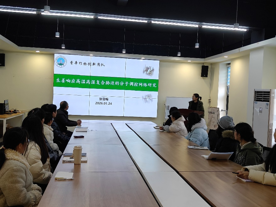 张雪梅老师则从微观分子机制角度,汇报了题为“生姜响应高温高湿复合胁迫的分子调控网络研究”的最新工作。她的研究通过现代分子生物学技术,初步解析了生姜在高温高湿逆境条件下关键生理过程的变化及相关基因的表达调控网络,为深入理解生姜的逆境适应机制、培育抗逆新品种奠定了重要的理论基础。